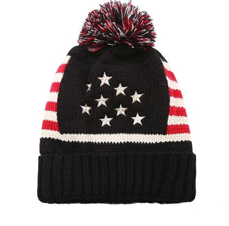 Custom Amerian flag Stripe and Stars Jacquard winter hat knit hat Arylic Knitting Hat Cuff Beanie