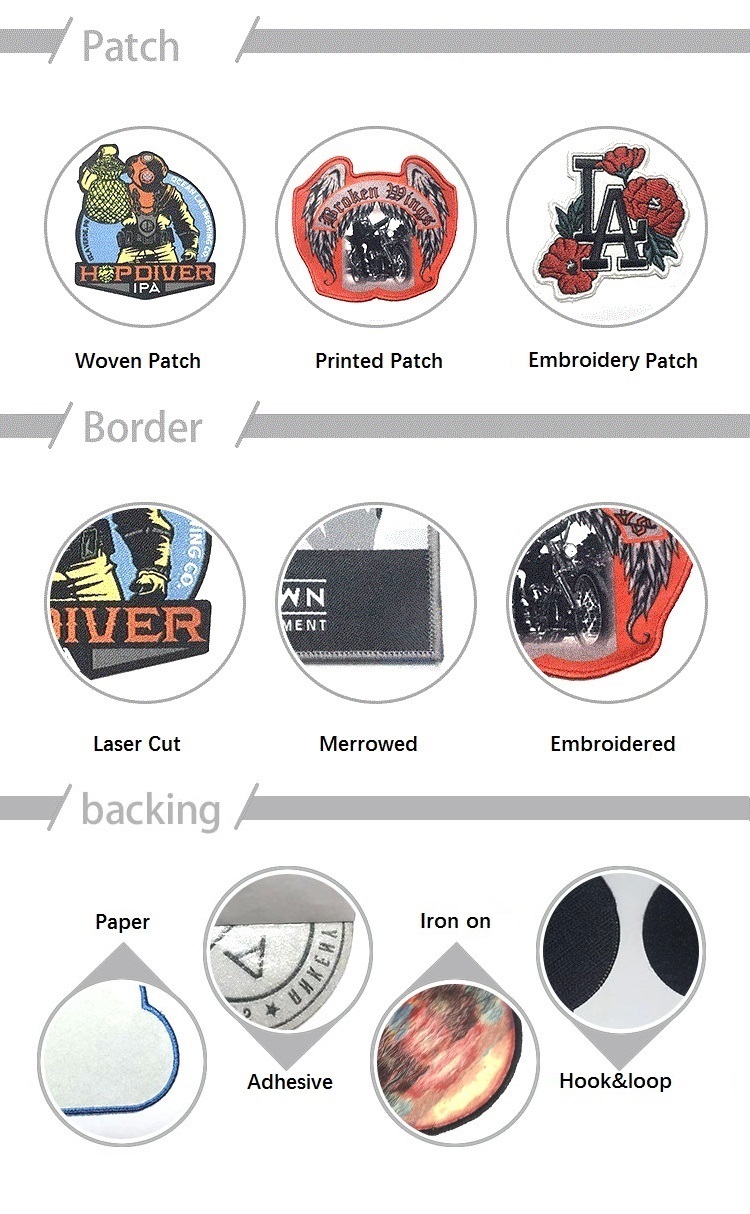 | Backing | Iron on | Iron on, Paper, Stick on, Hook&loop |