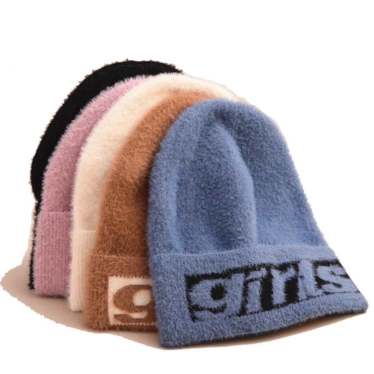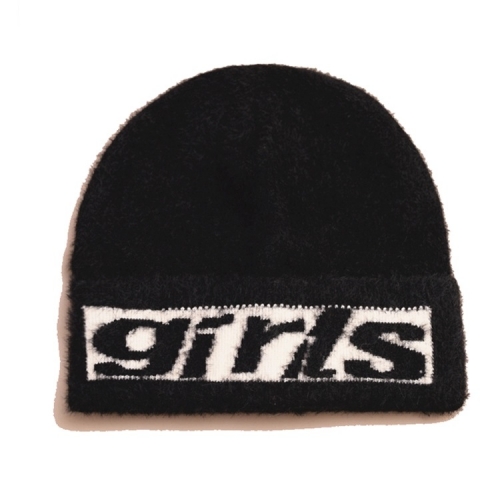 Custom Soft Fleece Sports Black Beanie Hats Knitted For Girls